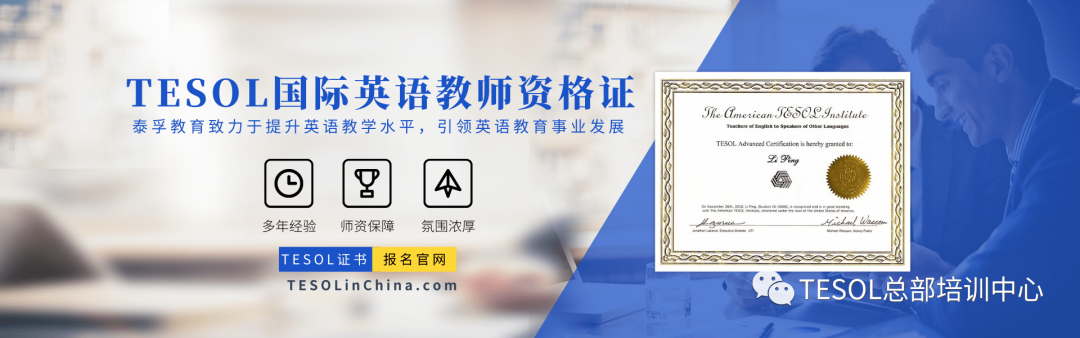 总之,想要考取证书的话,首先要做好充足的准备,对于TESOL课程也要去了解,最好是经过这方面儿专业的培训,只要通过这样的类似于考试的培训以后就能够直接拿到证书了。当然一般想要报考TESOL证书话,可以直接去这样的网站去报名就可以。